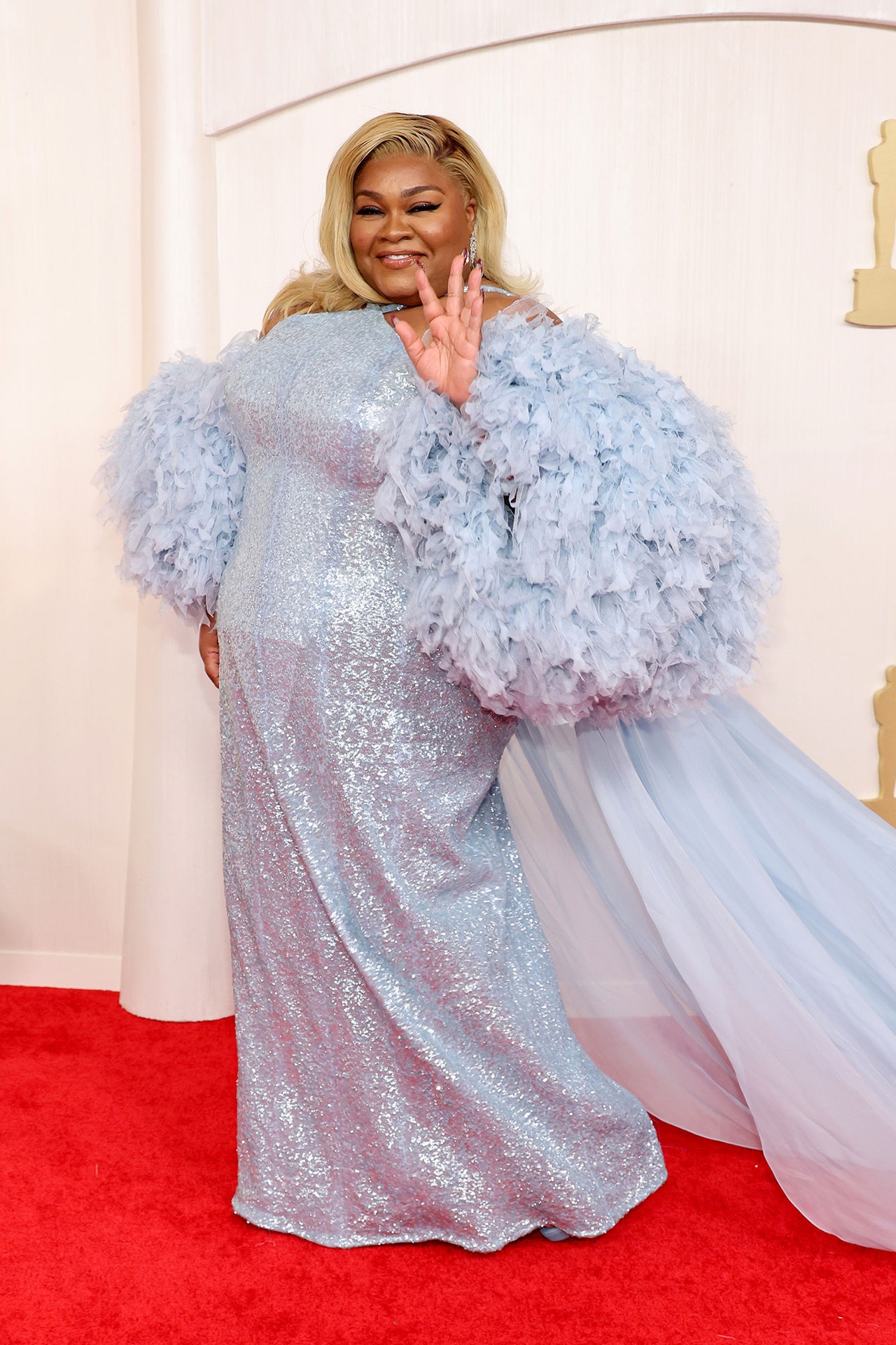 Scelta, invece, fatta da Ariana Grande che ha fatto la sua apparizione avvolta, anzi, fagocitata da una vera e propria esuberanza di rosa confetto. Giambattista Valli realizza per lei un abito su misura che è destinato a farsi ricordare per l’effetto scenografico ma che, al tempo stesso, è l’esempio di come non dovrebbe mai essere vestita una figura minuta come quella di Ariana. Un semplice abito a tubo drappeggiato, infatti, è stato praticamente subissato da una sopragonna a nuvola con tanto di strascico che inghiottono completamente la popstar facendola scomparire alla vista e dimostrando che si può essere attaccati e sconfitti da una serie di Bigbabol.